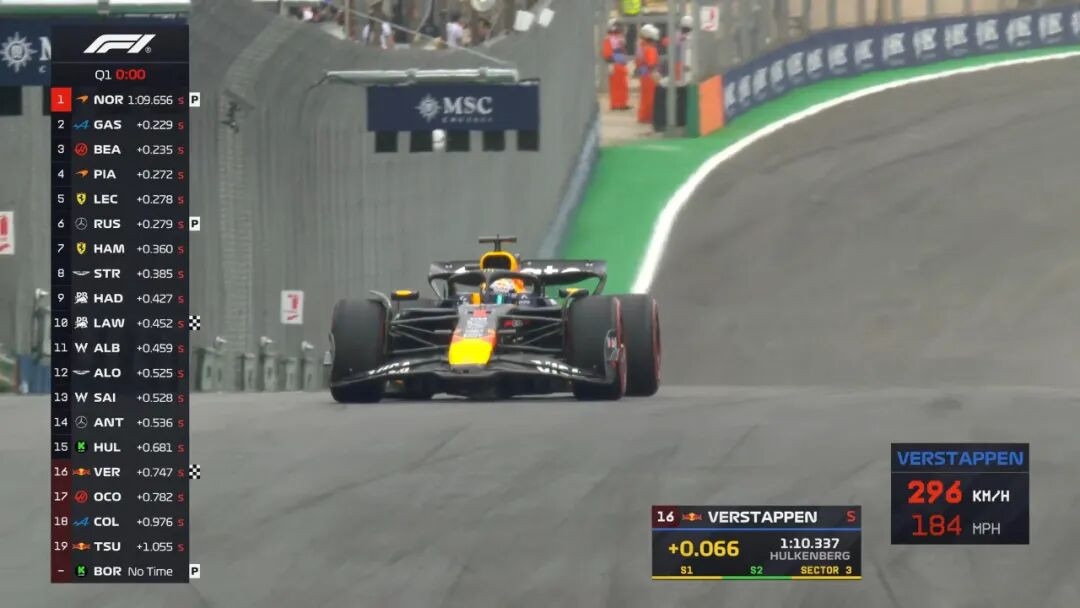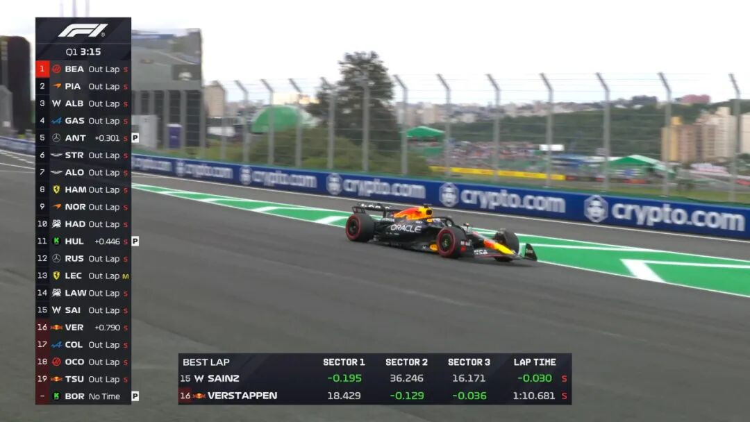 最终,Q1淘汰维斯塔潘、奥康、科拉平托、角田裕毅。红牛车队双车未能进入Q2。博托莱托最终没能赶上Q1,无缘排位赛。