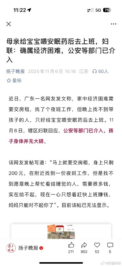 【2】母亲给宝宝喂安眠药后去上班,妇联:确属经济困难,公安等部门已介入