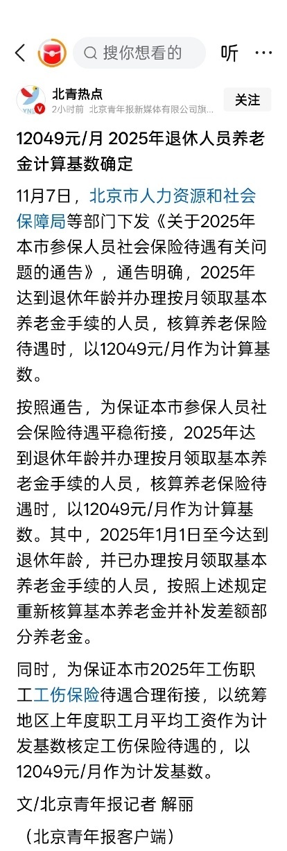 【10】12049元/月,北京2025年退休人员养老金计算基数确定
