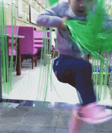 应该是老板的儿子,不然敢吊在门帘上玩。
