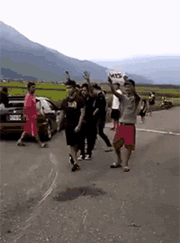 小伙为把美女看,一头摔倒脚朝天。