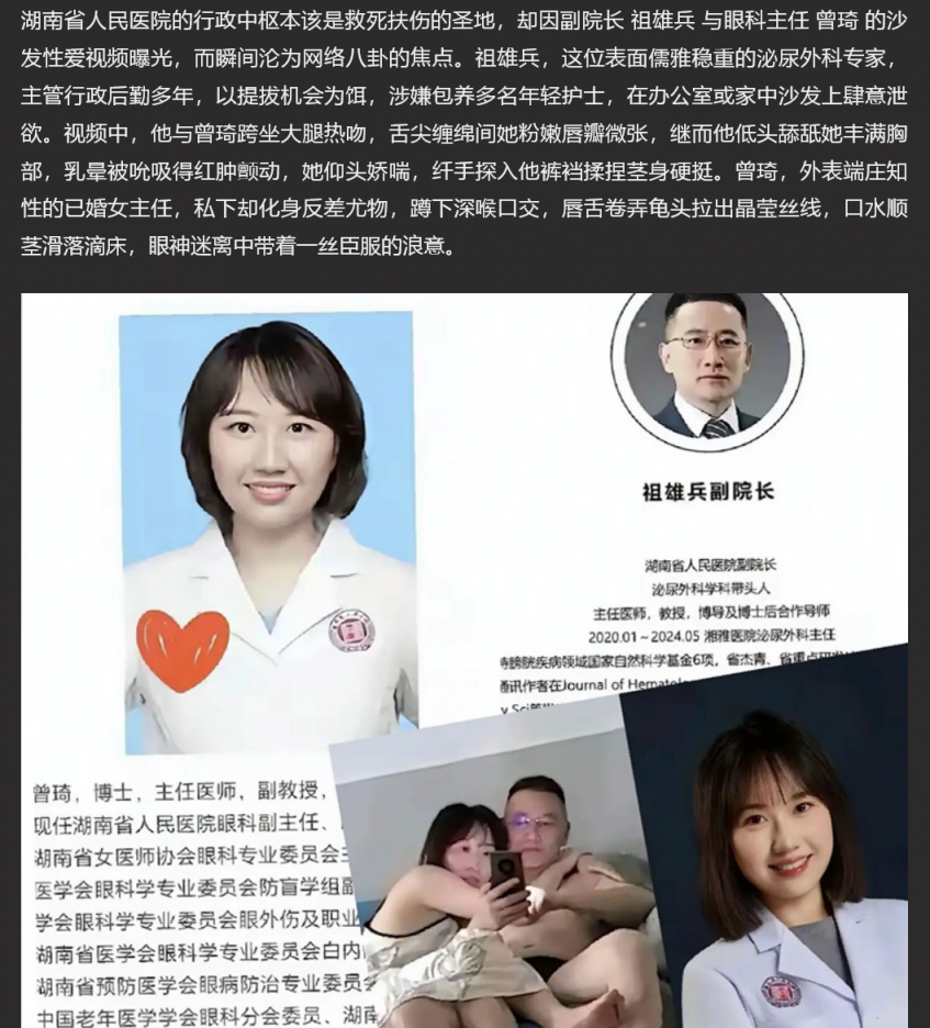 【4】☘湖南省人民医院副院长 祖雄兵 与眼科主任 曾琦 大搞权色交易 家中愉欢视频被曝光