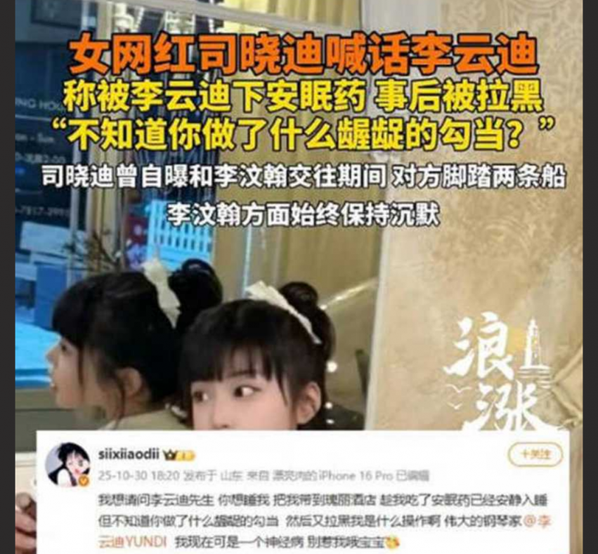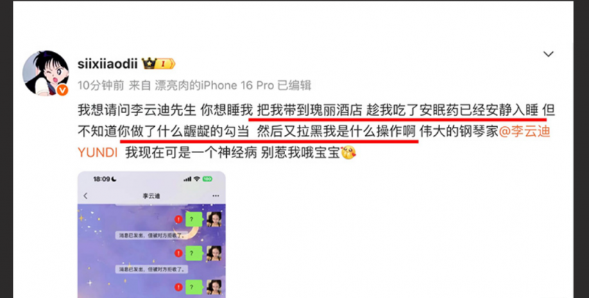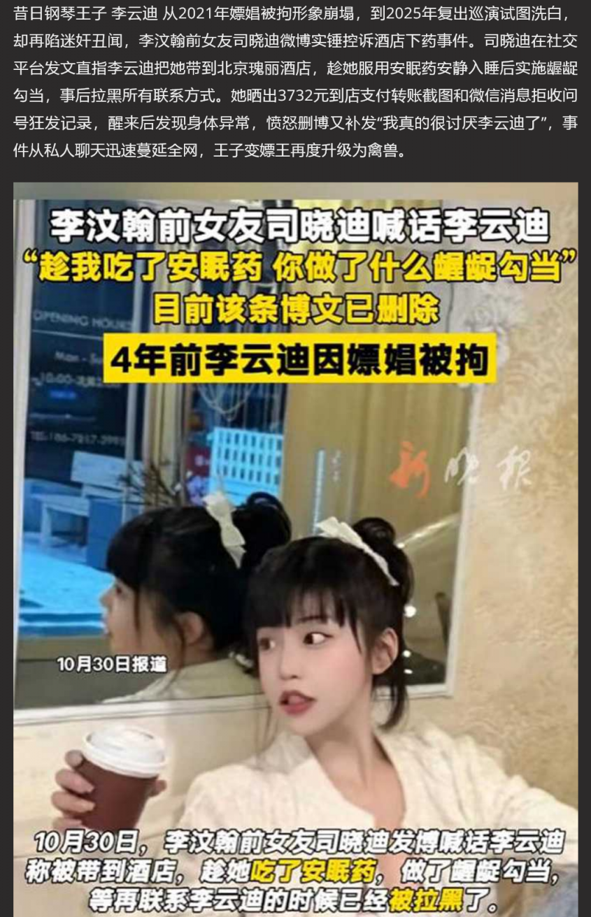 【3】✨钢琴王子 李云迪 嫖娼塌房再度被曝迷奸 歌手李汶翰前女友司晓迪 迷奸拉黑视频记录曝光