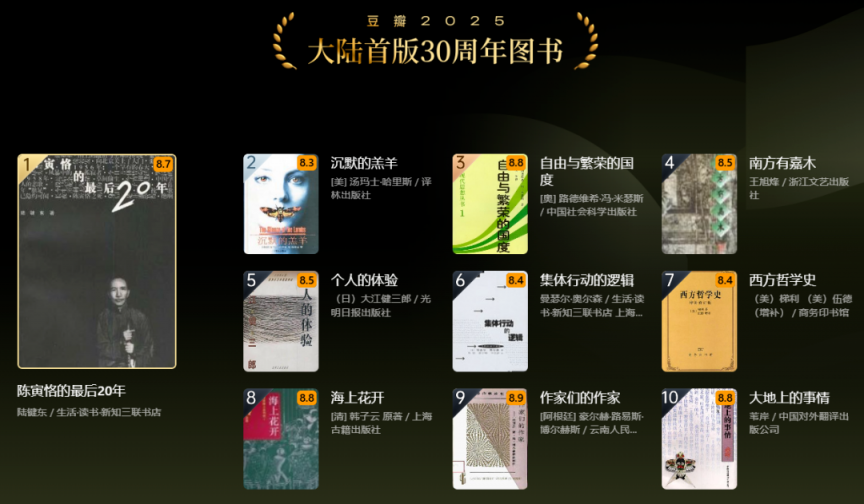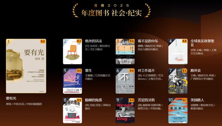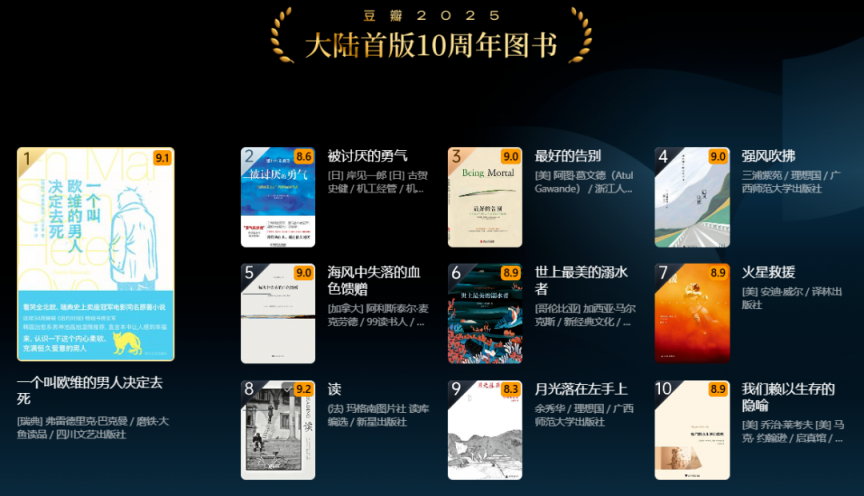 作为全国最大的书影音评价平台,豆瓣榜单的权威性,当属独一无二。