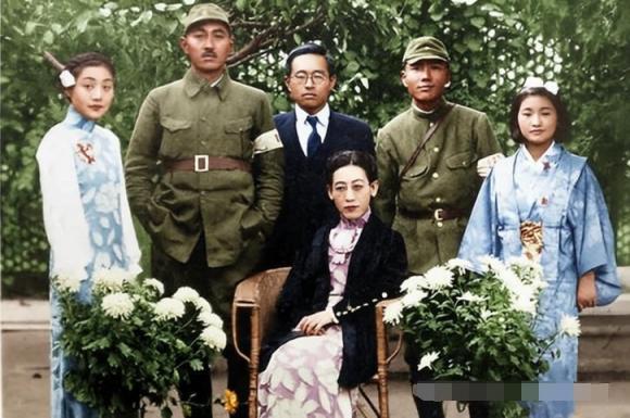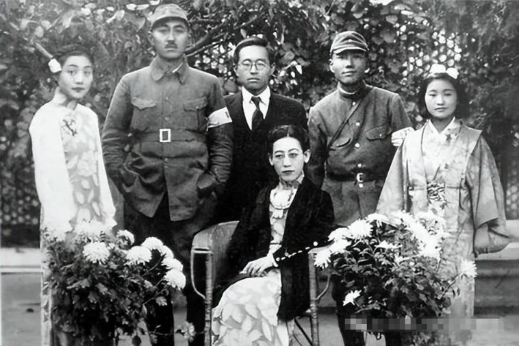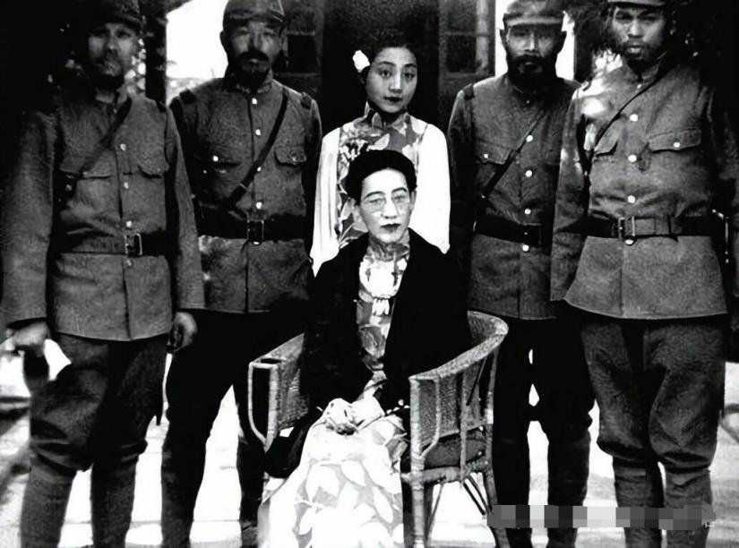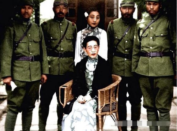 坐在第一排正中央的,是时年31岁的川岛芳子。此时的她,一副眼镜架在她的鼻梁上,镜片后那双眼睛,似乎藏着无尽的心思。她的嘴角微微上扬,似笑非笑的表情挂在脸上,那神态中透着一种难以捉摸的意味,在她身旁,是她的侍女,静静地站立着。身后,几个日本军官身着军装,身姿笔挺,身上散发着一种冷峻的气息。