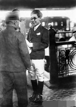 4月20日,日军参谋本部决定解散安国军,川岛芳子被召回满洲国接受调查。5月至6月,她滞留长春,试图通过日本驻满官员重新获得信任,但未获成功。照片是7月14日抵达东京车站,川岛芳子正与日本关东军会面。