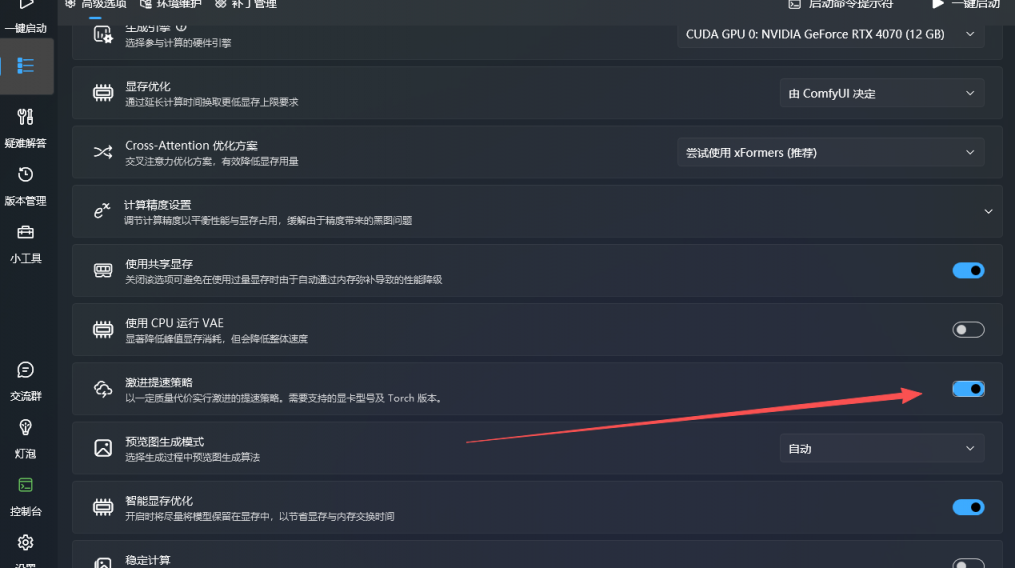 2.如果是像我用的是秋叶版本的,到高级设置,把激进提速策略关闭。