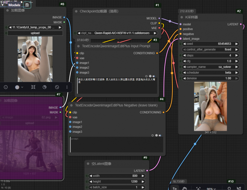 这工作流还能改图和动作,提示词可以直接反推H图。更多玩法还在探索中,比较费电脑,喜欢的小伙伴可以试一试。