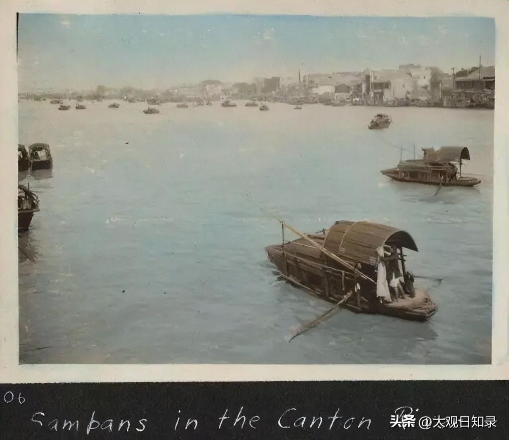 广州附近,珠江上的帆船。