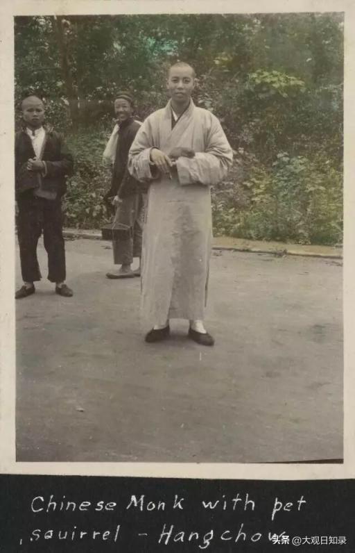 西湖边的和尚,手上还捧着一只松鼠。