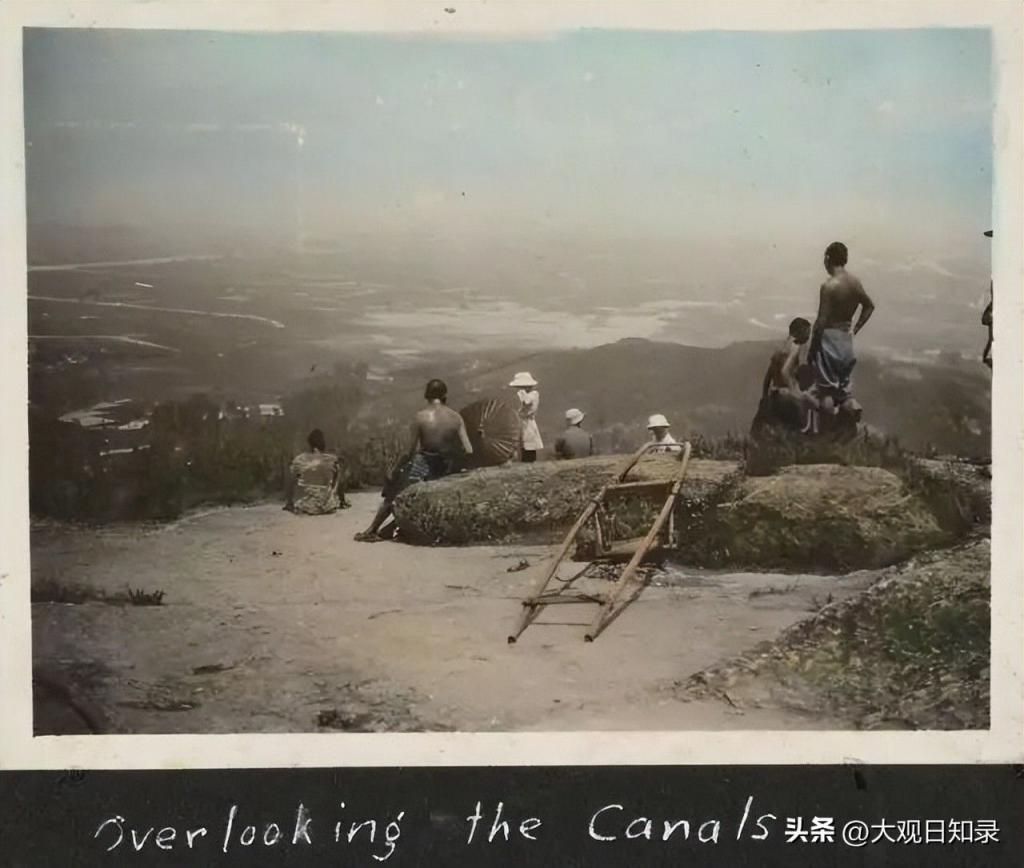一行人登上山顶,在山顶俯瞰运河。