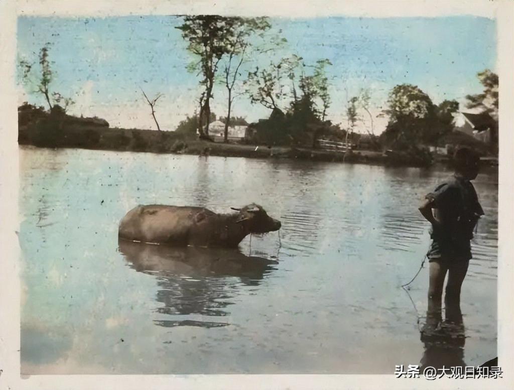 特别要说明的是,这批照片并非AI上色,而是原版。拍摄设备为便携式折叠相机,使用早期彩色干版(如 Autochrome 或 Paget 工艺),形成了这样独特的色彩。这批照片现藏于美国哈佛燕京图书馆(Harvard–Yenching Library)。