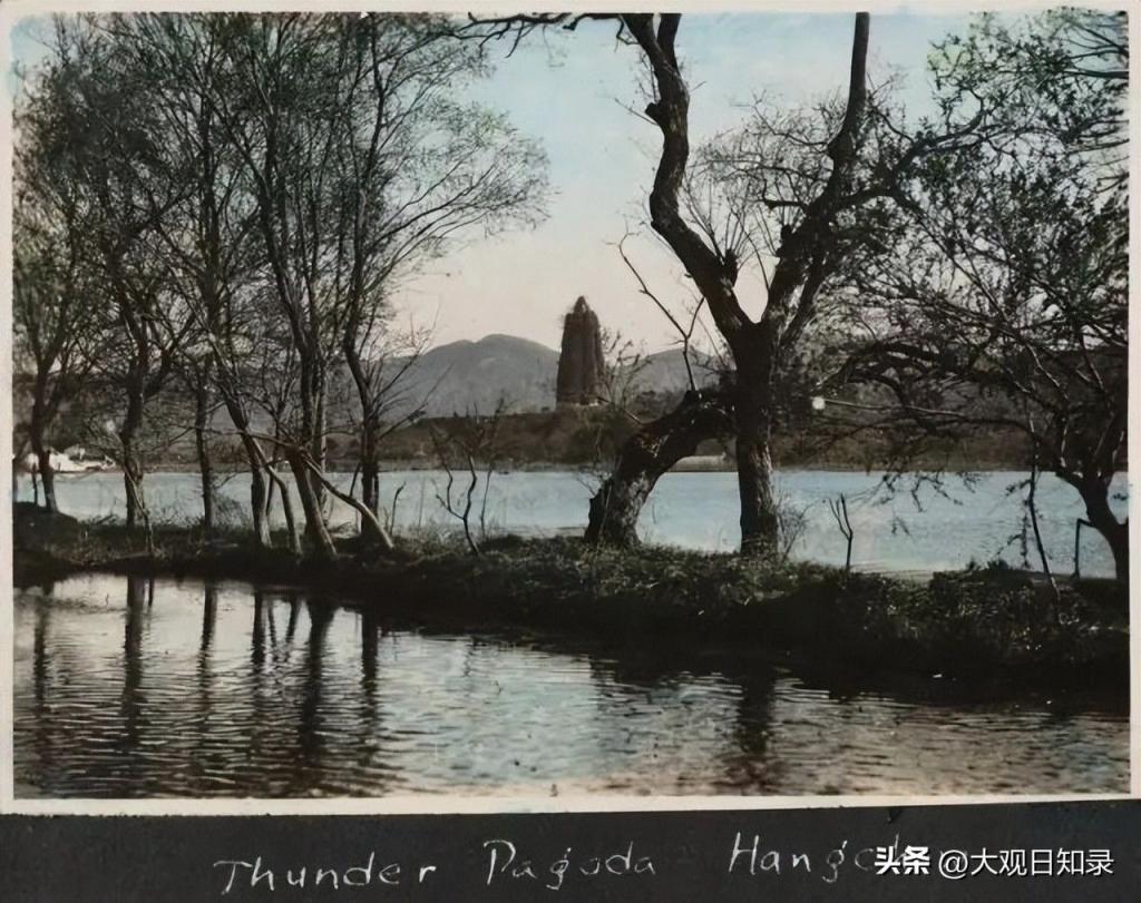 杭州雷峰塔,当时还没有垮塌,雷峰塔是1924年9月25日塌的,可知这组照片的拍摄时间。