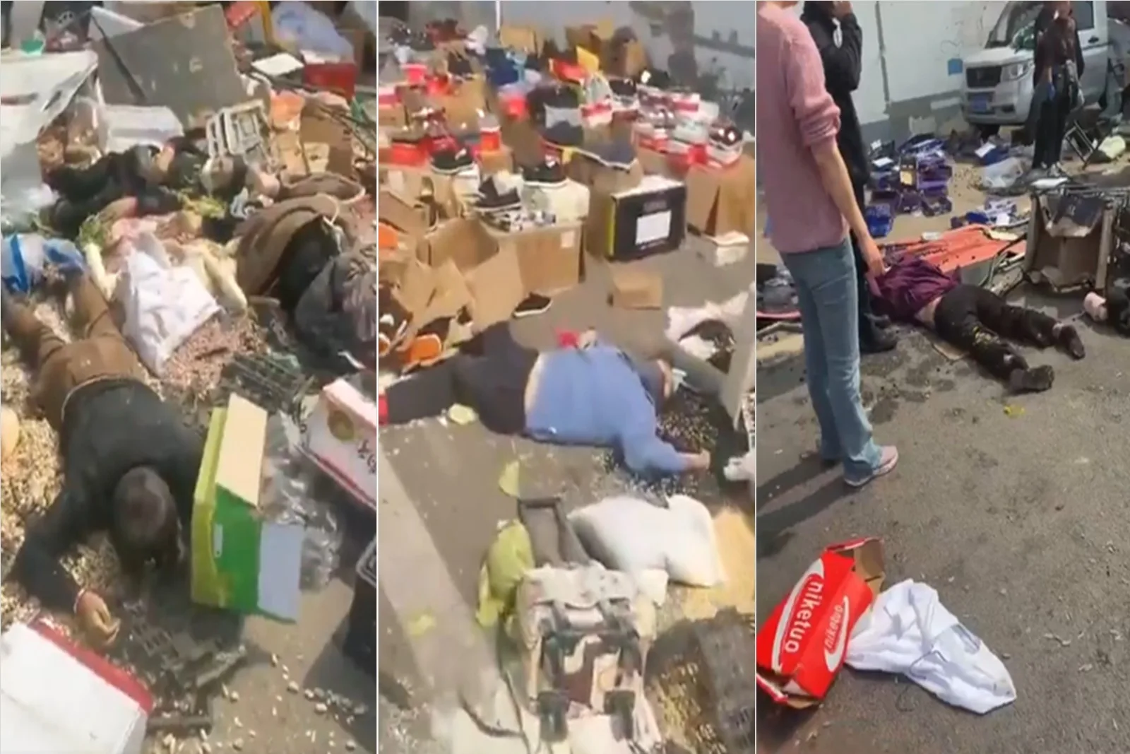 铲车径直驶入集市,冲向人群密集的摊位区域