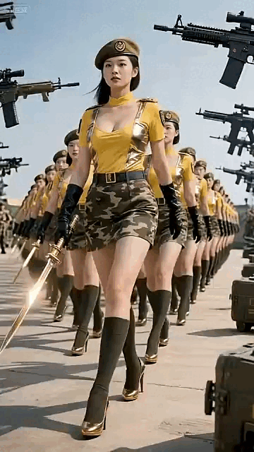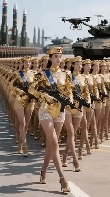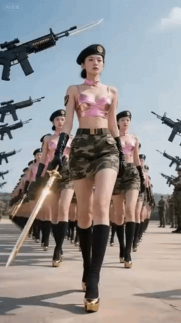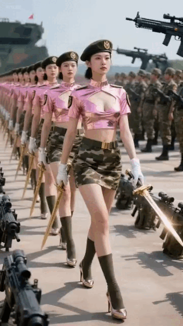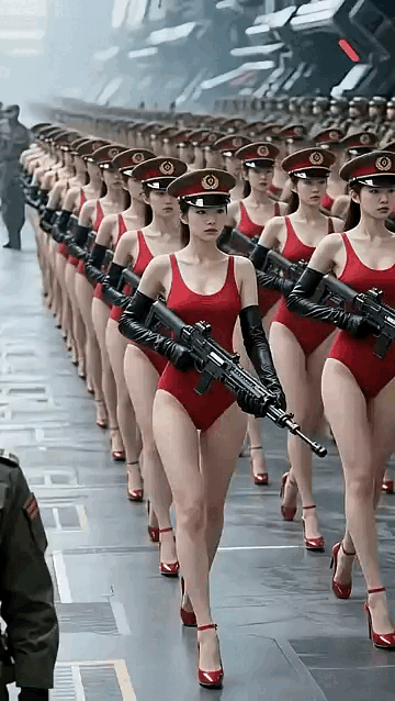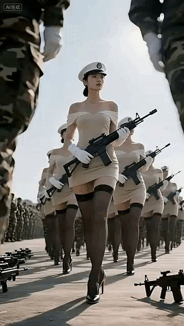 不过我等榴民对这些风骚的女兵还是比较看好的,为满足大家的一点色心,本座制作了一组动图,近景观察这些美女的妖冶身姿,还有极具诱惑力的甜美笑容。下面按出场顺序动图解析一下美女阵列。